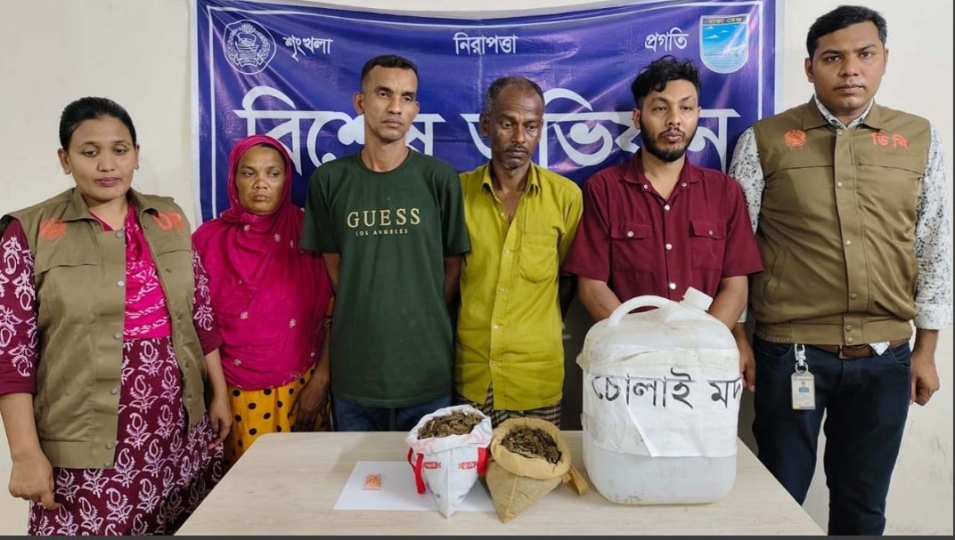 অভিযানে টাঙ্গাইলের গোপালপুর উপজেলার বালোবাড়ী এলাকার ইউসুফ আলী (৪৫) ও তার স্ত্রী শিল্পী বেগম (৪০)কে ১ কেজি গাঁজাসহ আটক করা হয়। একই সময় ২০ লিটার চোলাই মদসহ গ্রেপ্তার করা হয় চাঁদপুরের মতলব উত্তর উপজেলার চর মাছুয়া এলাকার আরিফ হোসেন রাজু (২৬)কে। এ সময় মাদক বহনে ব্যবহৃত একটি মোটরসাইকেল জব্দ করা হয়।
