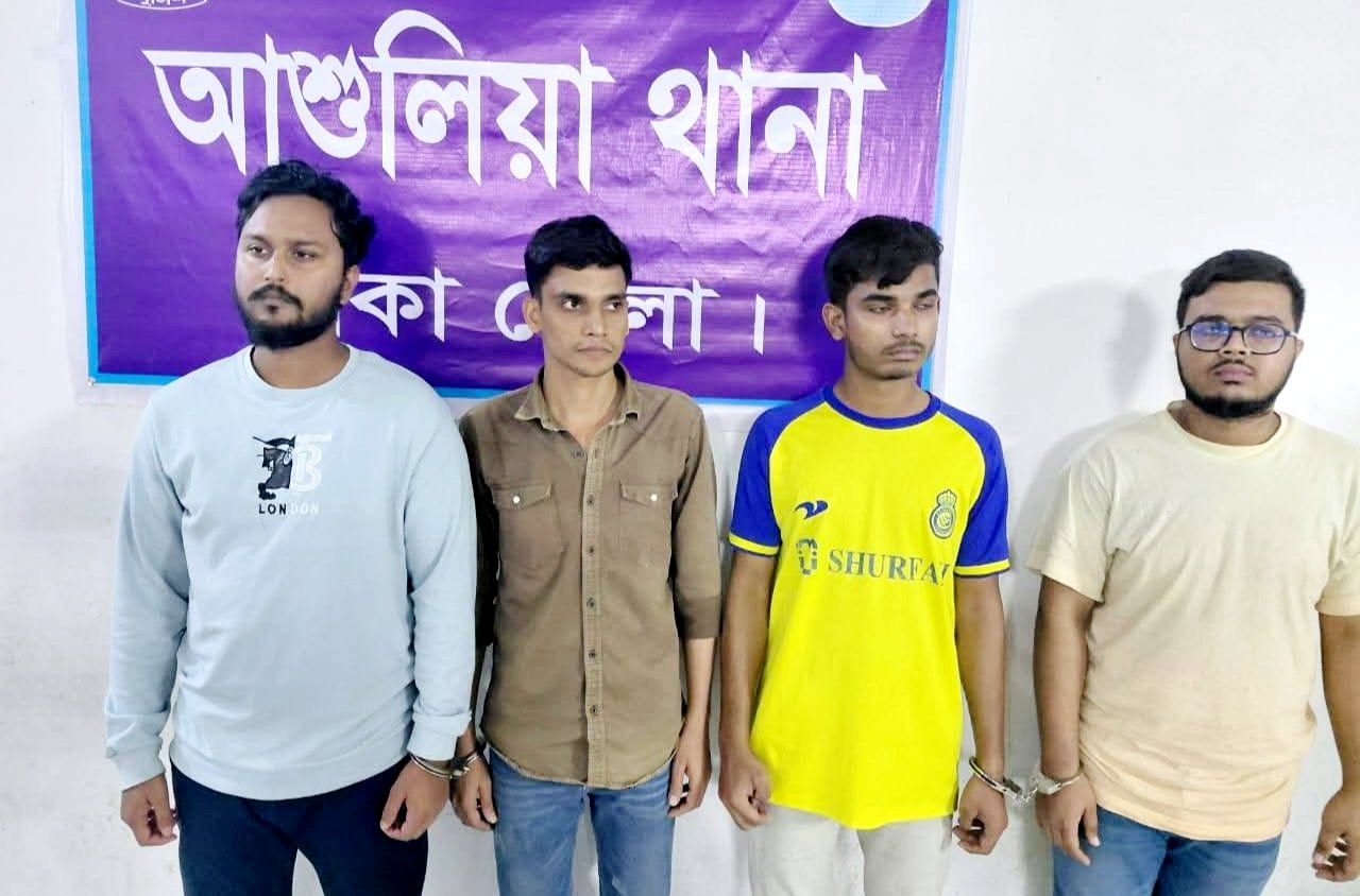 গ্রেপ্তার ব্যক্তিরা হলো—গণবিশ্ববিদ্যালয়ের আইন বিভাগের দ্বিতীয় বর্ষের শিক্ষার্থী দেলোয়ার ভূইয়া (২২), তাজুল ইসলাম তাজ (২০), শ্রাবণ সাহা উৎস (২১) এবং একই বিশ্ববিদ্যালয়ের সিনিয়র শিক্ষার্থী অন্তু দেওয়ান (২৪)।